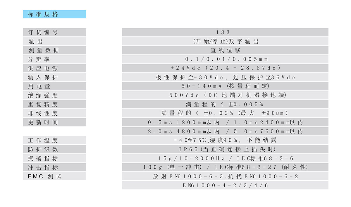 德敏哲183系列(开始/停止)数字输出是经济,而能达到较高抗干扰性的数字信号输出。先控制器会向传感器发出开始信号(开始脉冲)。根据当时位移磁块的位置,传感器便发出相对应的停止信号(停止脉冲)。控制器便能计算出丙组脉冲信号时间差,继而准确计算出位移值。