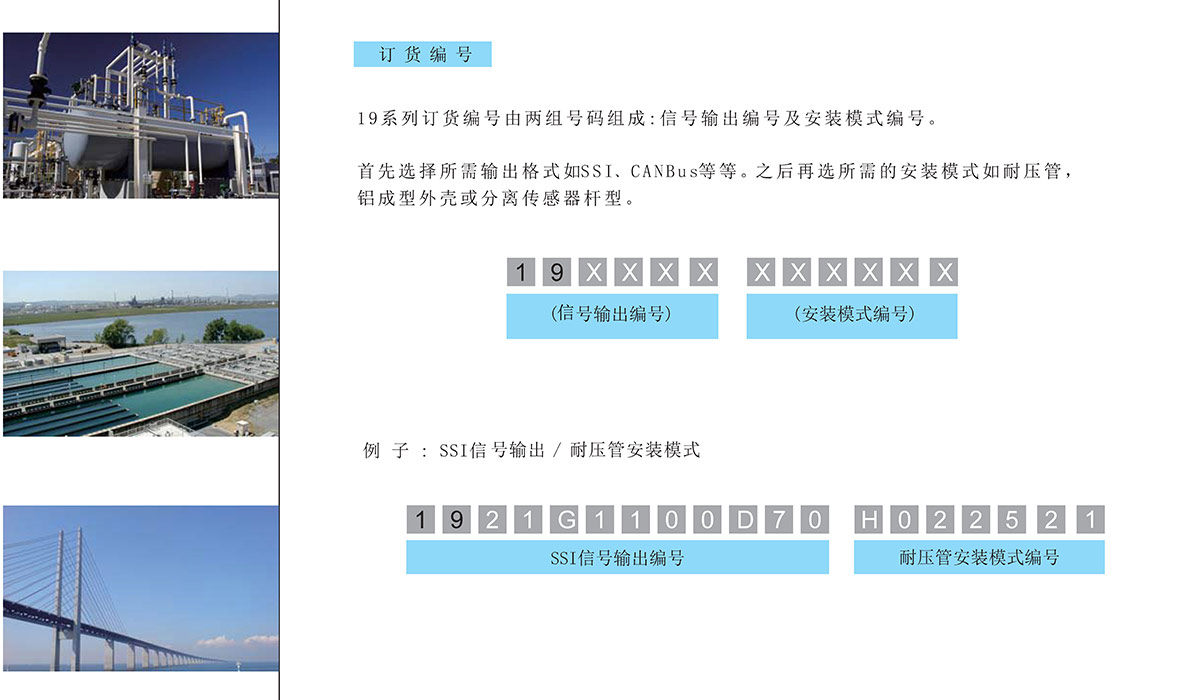 19系列特别针对苛刻环境应用设计,如矿山、铁路、专用车辆、炼油、化工、发电、制药、液压、桥辆等等行业。除了基本的数码电压和电流信号输出外,还提供更为丰富的通信接口,包括数字量的SSI和Start/Stop ,现场总线的CANbus,Profibus-DP,DeviceNet,EtherCAT以太网控制技术等。