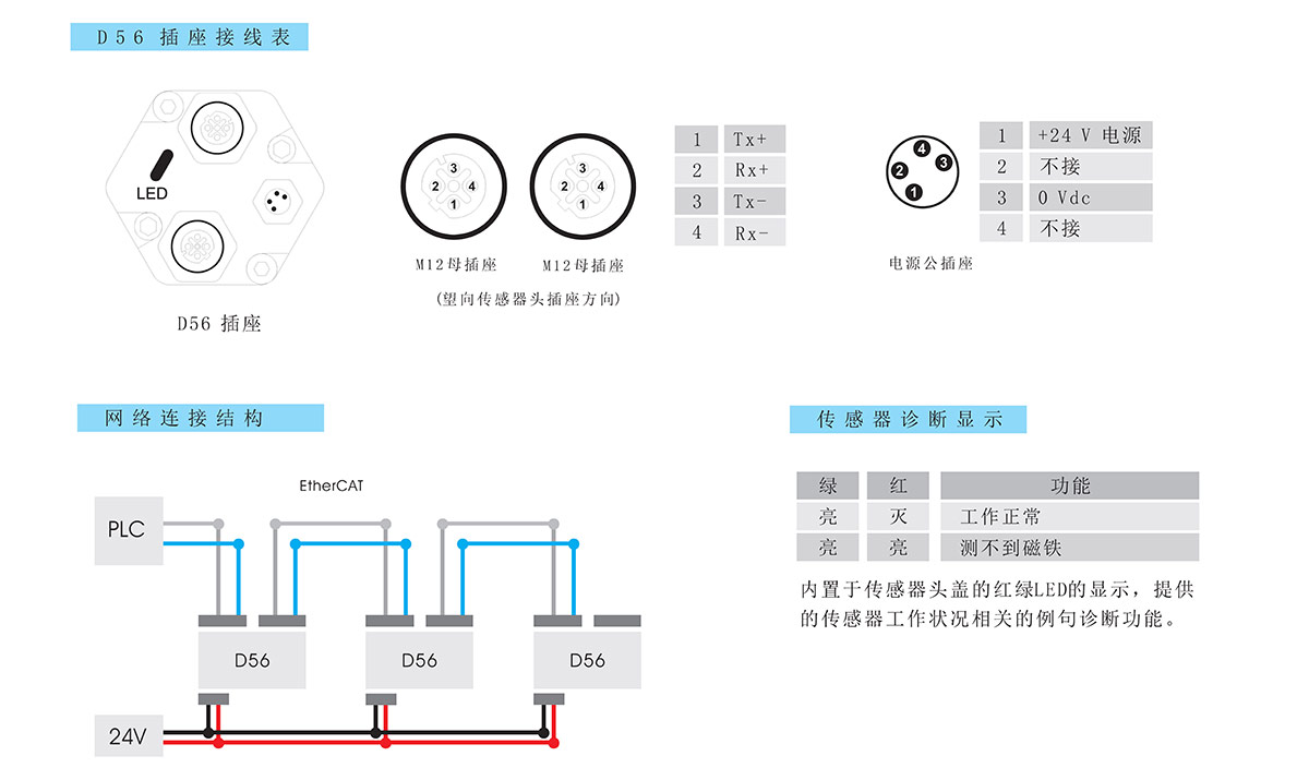 197系列-EtherCAT以太网控制技术 磁致伸缩位移传感器 接线指引及说明