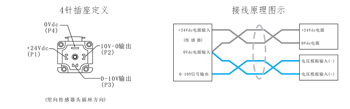 5、切勿把电源供应器+24Vdc接至传感器0V(P4)及同时把电源供应器0V接至讯号输出点(P2/P3),否则传感器会立即被烧毁。如发生上述情况并不包括在保修条款之内。